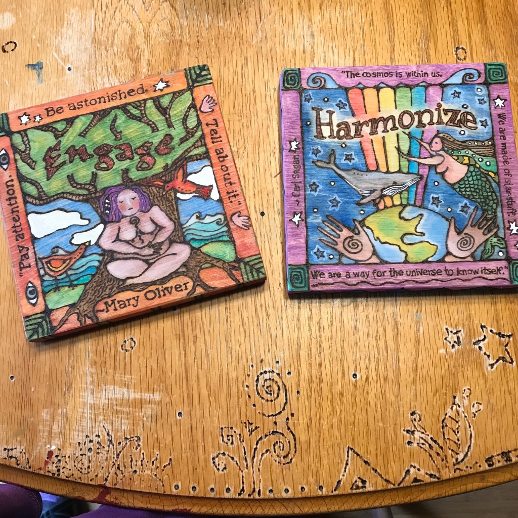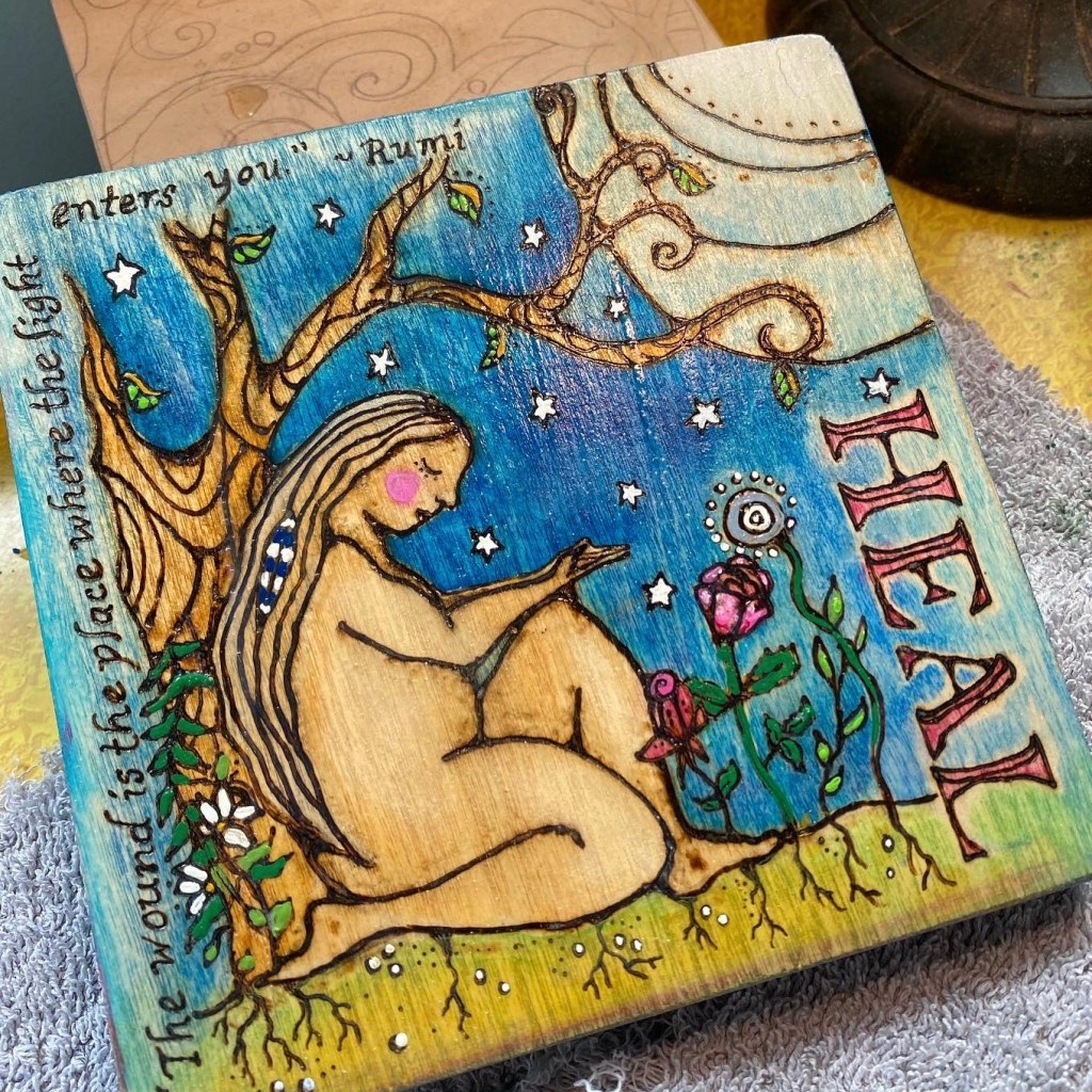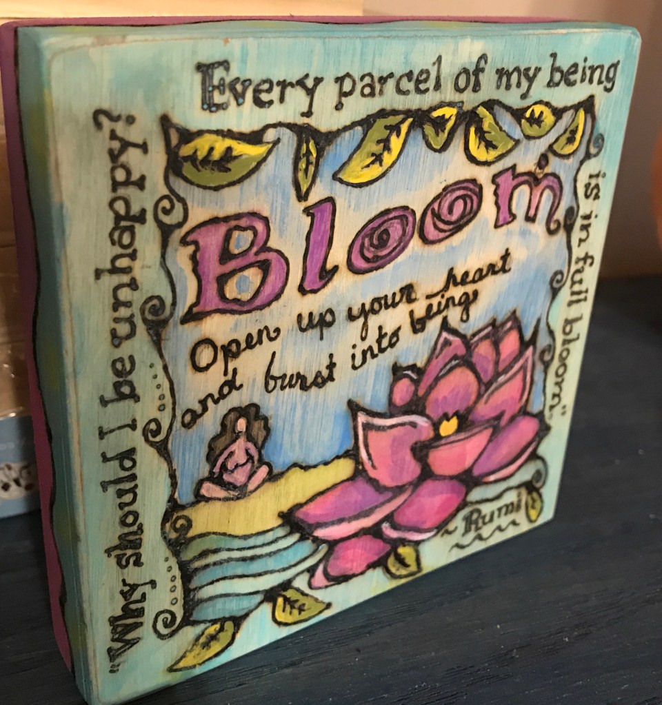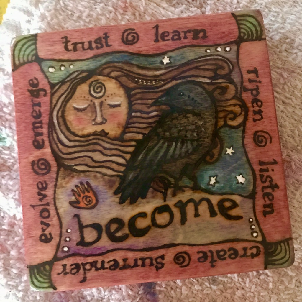 In Sanskrit, drishti means “focused gaze,” and is often used in yoga and meditation practices to create balance and purpose. I call these simple 4″x4″ pieces drishtis because they are specifically created as a beautiful way to remind you of your intention, whether it’s a word-of-the-year or simply something you need more of in your life. They can hang or sit on an altar, desk, etc. Each one is created personally for you, designed around a word of your choosing and whatever unique requests you may have regarding colors, images, or affirmations. I am also happy to create intuitively and secretly if you are unsure of what you need or want. If you choose to go this route, after asking you a handful of questions via email, I will create something that comes from my heart that will surprise you in the most serendipitous of ways. It will come wrapped so you can open it at the time of your choosing, making it a wonderful gift for yourself.