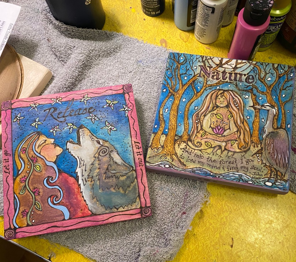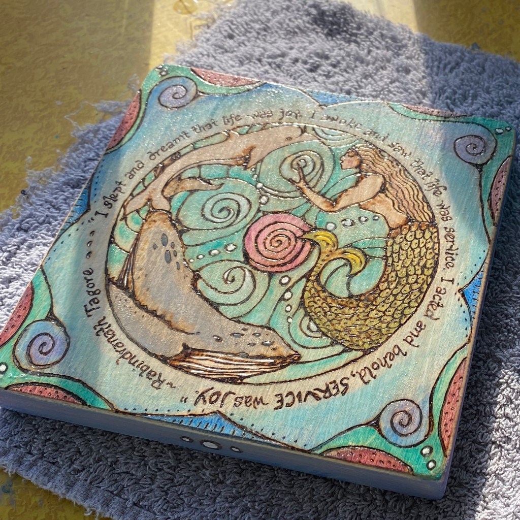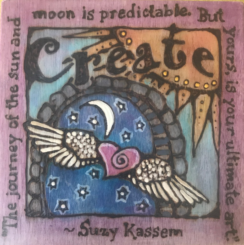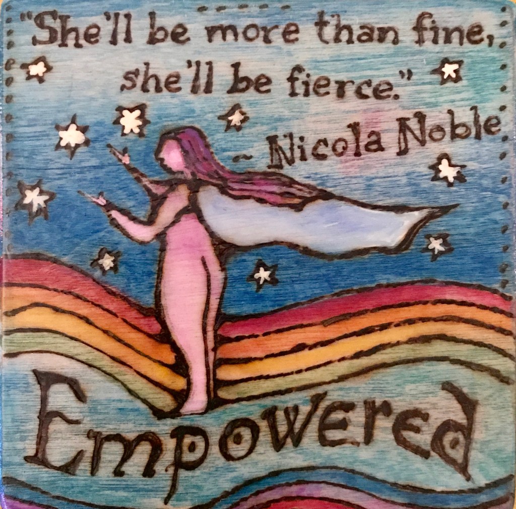 In Sanskrit, drishti means “focused gaze,” and is often used in yoga and meditation practices to create balance and purpose. I call these simple 4″x4″ pieces drishtis because they are specifically created as a beautiful way to remind you of your intention, whether it’s a word-of-the-year or simply something you need more of in your life. They can hang or sit on an altar, desk, etc. Each one is created personally for you, designed around a word of your choosing and whatever unique requests you may have regarding colors, images, or affirmations. I am also happy to create intuitively and secretly if you are unsure of what you need or want. If you choose to go this route, after asking you a handful of questions via email, I will create something that comes from my heart that will surprise you in the most serendipitous of ways. It will come wrapped so you can open it at the time of your choosing, making it a wonderful gift for yourself.